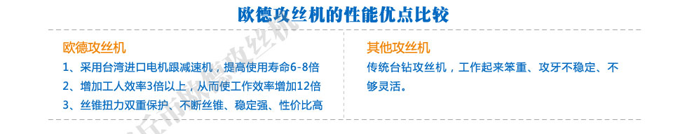 安丘市歐德機(jī)械有限公司是山東省有名的電動攻絲機(jī)生產(chǎn)研發(fā)制造企業(yè),公司常年對外供應(yīng)多種數(shù)控攻絲機(jī)產(chǎn)品并提供相應(yīng)的技術(shù)指導(dǎo)和售后服務(wù),公司發(fā)展進(jìn)取氣動攻絲機(jī)制造技術(shù),在螺紋鋼上絲機(jī)產(chǎn)品技術(shù)層面獲得多次改進(jìn),公司的鋼筋上絲機(jī)產(chǎn)品質(zhì)量也發(fā)生了質(zhì)的飛躍。