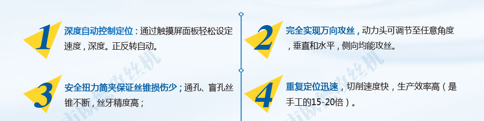 質(zhì)量求生存的方針,我們真誠歡迎新老客戶選用我公司產(chǎn)品。公司注冊資金1000萬元。公司以可靠的電動攻絲機(jī)質(zhì)量和合理的價位打動眾多消費(fèi)者。公司創(chuàng)造了一流的售后服務(wù)。我公司一如既往地堅持數(shù)控攻絲機(jī)服務(wù)第一的宗旨。我公司以只有最好的精神指導(dǎo)各項工作大力塑造品牌。我公司新廠區(qū)擁有齊全的現(xiàn)代化生產(chǎn)設(shè)備。充分利用區(qū)域和行業(yè)優(yōu)勢。精誠服務(wù)贏信譽(yù)是我們的鋼筋上絲機(jī)質(zhì)量方針。進(jìn)取精神是企業(yè)能與時俱進(jìn)的動力和發(fā)展的源泉。